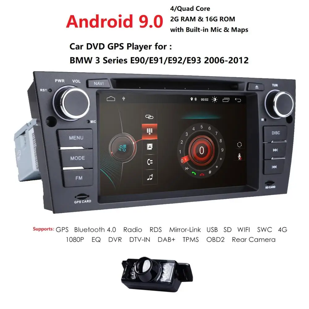 - Product name : 7" 2 din Android 9.0 Car DVD Auto Radio GPS Head unit For BMW E90 E91 E92 E93 2006 2007 2008 2009 2