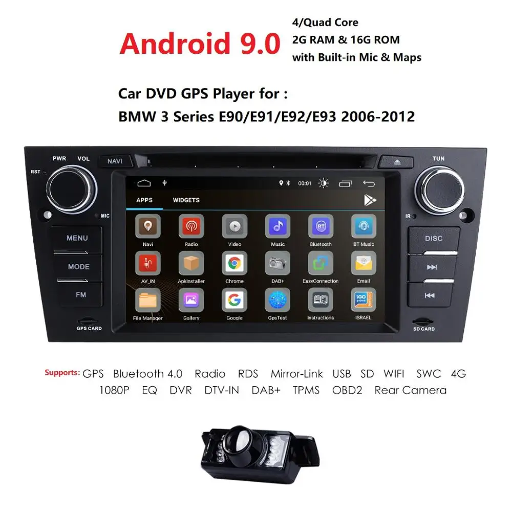 2019 android 9.0 4G Wifi 7 Inch 2G RAM Car DVD player For BMW E90 E91 E92 E93 2006 2007 2008 2009 2010 2011 2012 Camera DAB+ OBD : Click Here