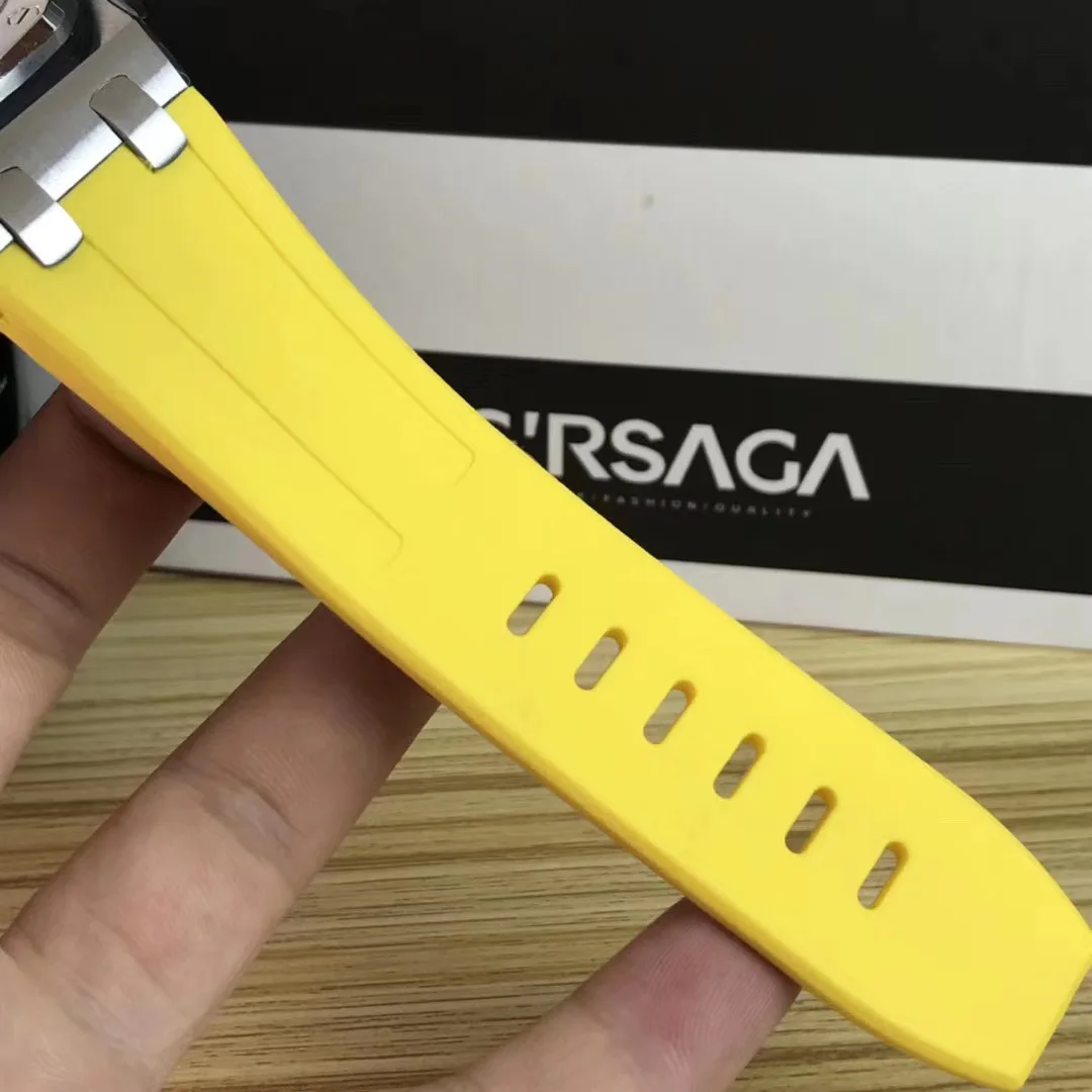 80% OFF Famous Brand New Men Automatic Mechanical Sapphire Back See Through Silver Yellow Rubber Stainless